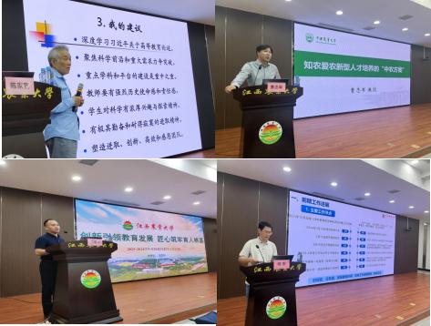 本次研討會(huì)上,邀請(qǐng)了復(fù)旦大學(xué)陳家寬教授圍繞習(xí)近平總書(shū)記關(guān)于教育的重點(diǎn)論述作報(bào)告,他闡述了我國(guó)高等教育和現(xiàn)代科教的發(fā)展歷程及推動(dòng)高質(zhì)量?jī)?nèi)涵式發(fā)展的“復(fù)旦”案例。邀請(qǐng)的中國(guó)農(nóng)業(yè)大學(xué)曹志軍教授,重點(diǎn)介紹了知農(nóng)愛(ài)農(nóng)新型人才培養(yǎng)的“中農(nóng)方案”,從專業(yè)及課程建設(shè)、人才培養(yǎng)方案實(shí)施與成效、教育教學(xué)成果培育方面分享寶貴經(jīng)驗(yàn)。隨后,教務(wù)處負(fù)責(zé)人匯報(bào)了2023-2024學(xué)年本科教學(xué)工作及下學(xué)年工作打算,教學(xué)質(zhì)量監(jiān)督與評(píng)估中心負(fù)責(zé)人匯報(bào)了審核評(píng)估迎評(píng)的前期工作進(jìn)展及后期安排。