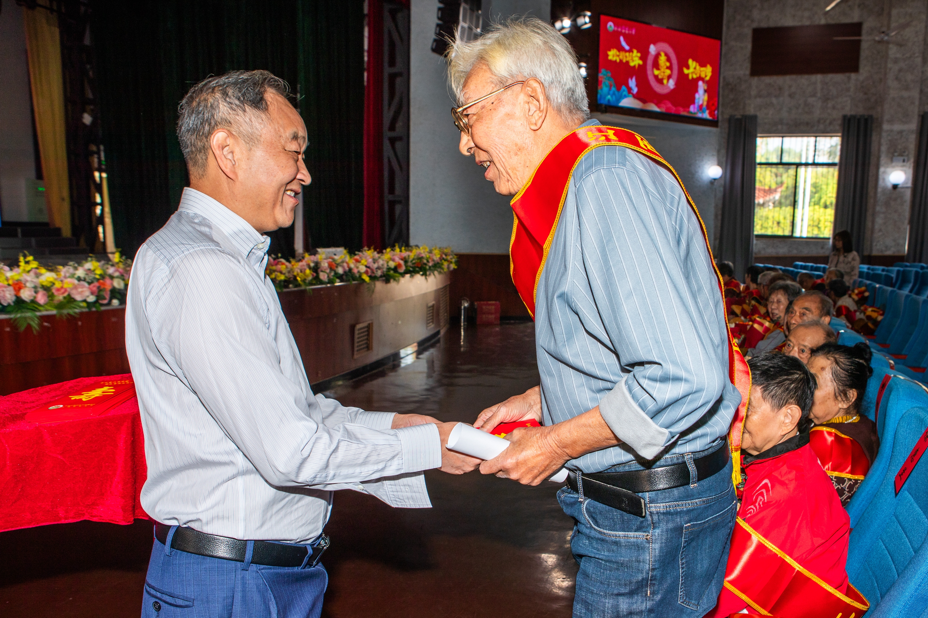 1012日上午,我校2024年老同志集體祝壽暨學(xué)校情況通報(bào)會(huì)在大禮堂舉行。校領(lǐng)導(dǎo)黃路生、魏輔文、樊后保、劉木華、張高亮、王文君、劉斯龍出席,各單位分管離退休工作負(fù)責(zé)人、老壽星及老同志代表參加,副校長(zhǎng)王文君主持通報(bào)會(huì)。