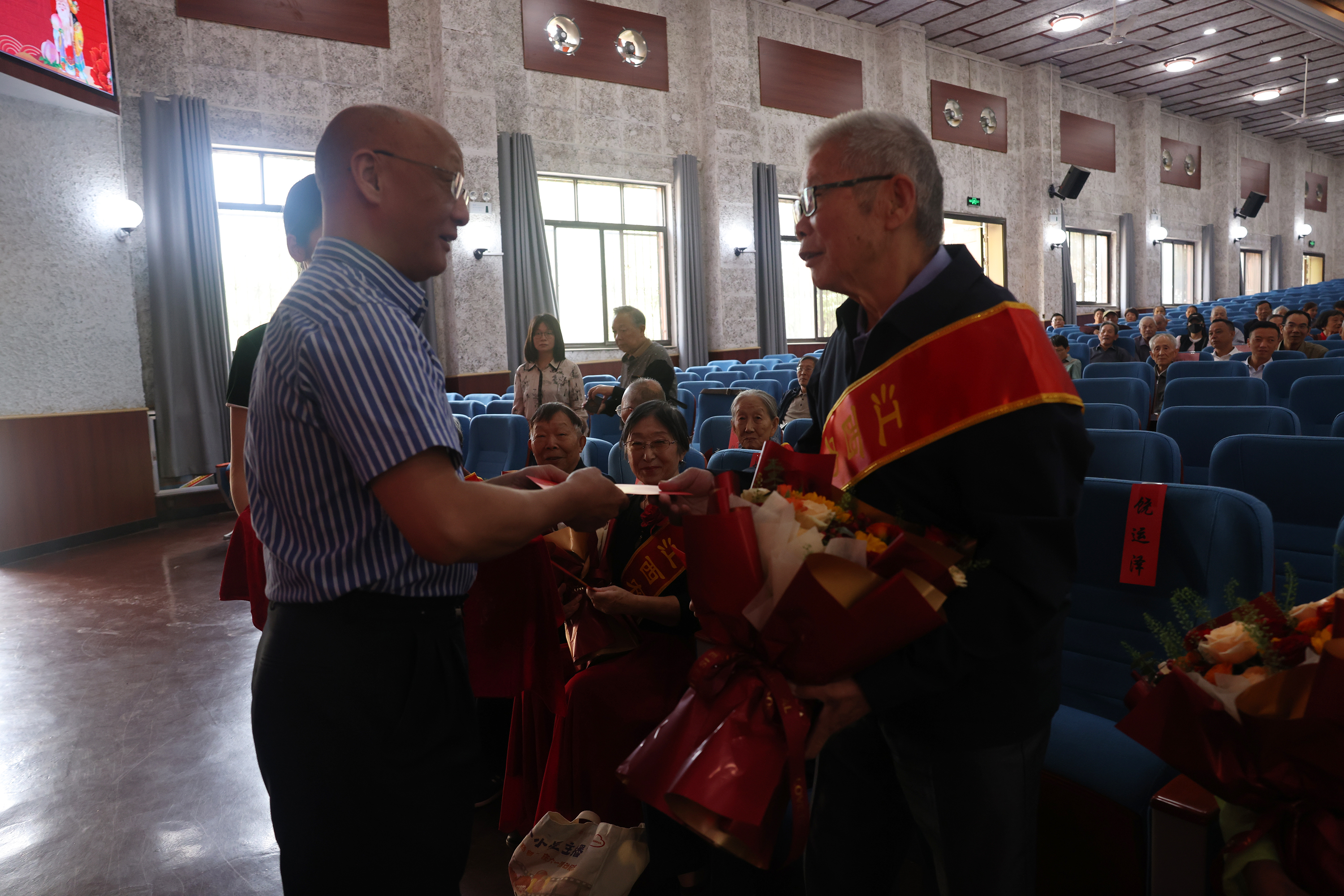 會(huì)上,校黨委書記黃路生院士、校長(zhǎng)魏輔文院士向各位老壽星獻(xiàn)上賀禮。老壽星酈國(guó)興教授代表全體老同志在會(huì)上發(fā)言,感謝學(xué)校黨政長(zhǎng)期對(duì)老同志的關(guān)心關(guān)愛(ài),分享了退休之后的生活狀況及心得感悟,祝愿學(xué)校發(fā)展建設(shè)得更加美好。