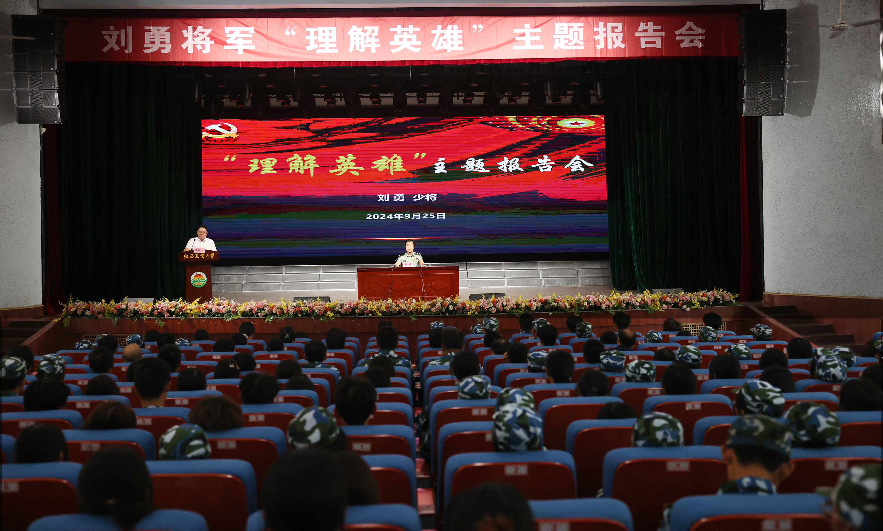 9月25日下午,校大禮堂座無虛席、掌聲雷動(dòng),一堂特別的開學(xué)第一課正在舉行。中國人民解放軍陸軍步兵學(xué)院原政委、陸軍博物館籌建辦公室專家組組長劉勇少將應(yīng)邀為師生們作“理解英雄”主題報(bào)告。全體在校校領(lǐng)導(dǎo)、各學(xué)院黨委副書記、輔導(dǎo)員代表、機(jī)關(guān)處室代表、新生代表近千人聆聽報(bào)告。校紀(jì)委書記劉斯龍主持報(bào)告會。