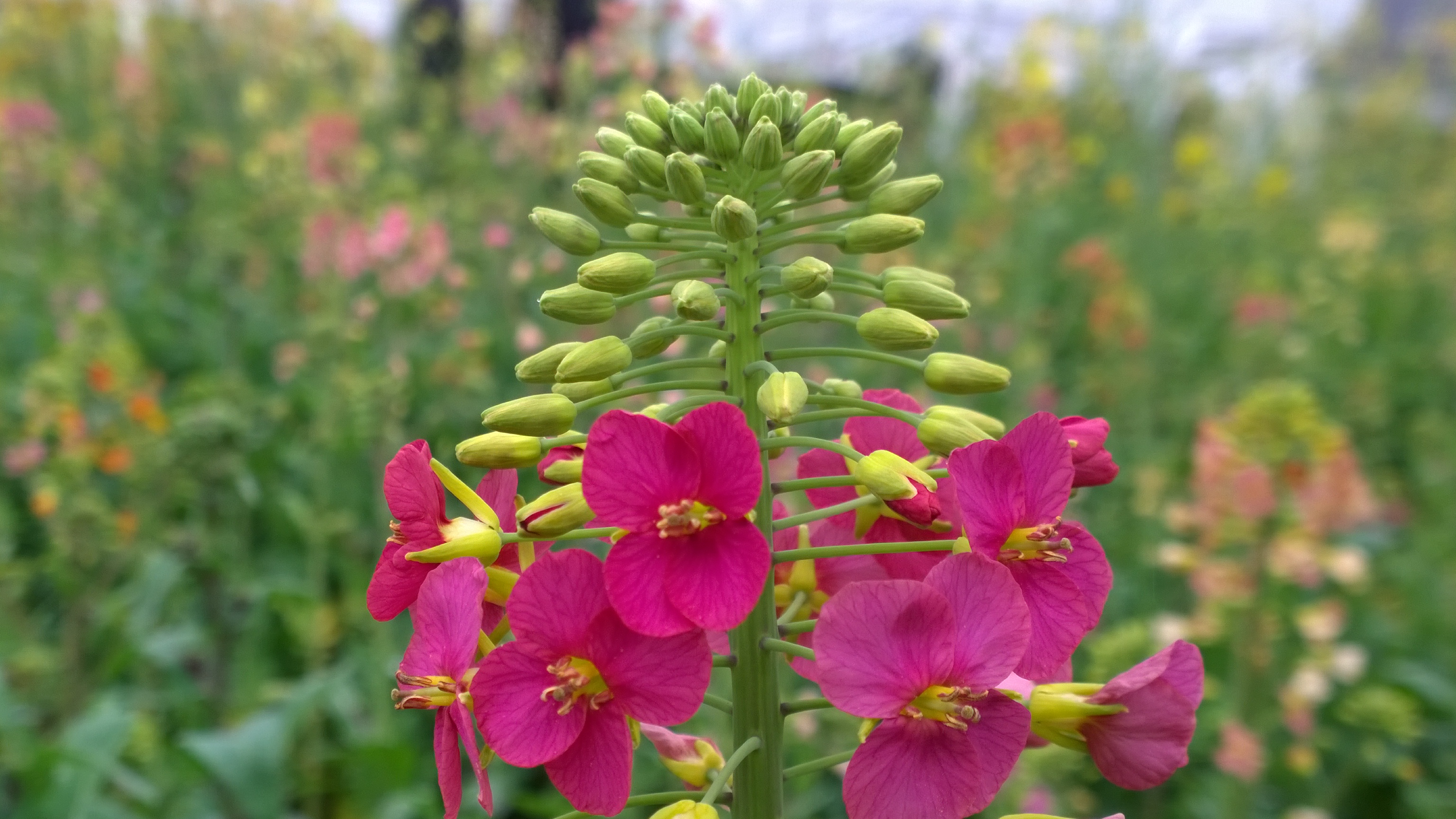 團隊負責人付東輝研究員表示,團隊從觀光型油菜研究出發,緊密結合婺源等地油菜花產業發展的瓶頸問題,培育油菜新花色,開發新的油菜花產品,對促進油菜花產業的持續健康快速發展有積極意義。今年的彩色油菜花具有顏色深、色澤飽滿和綜合性狀優良的特點,在去年36種穩定花色的基礎上,新增玫紅、深水粉紅、粉紅、暗紅、潔白很亮、極紅6種顏色,使穩定花色達到42種。
