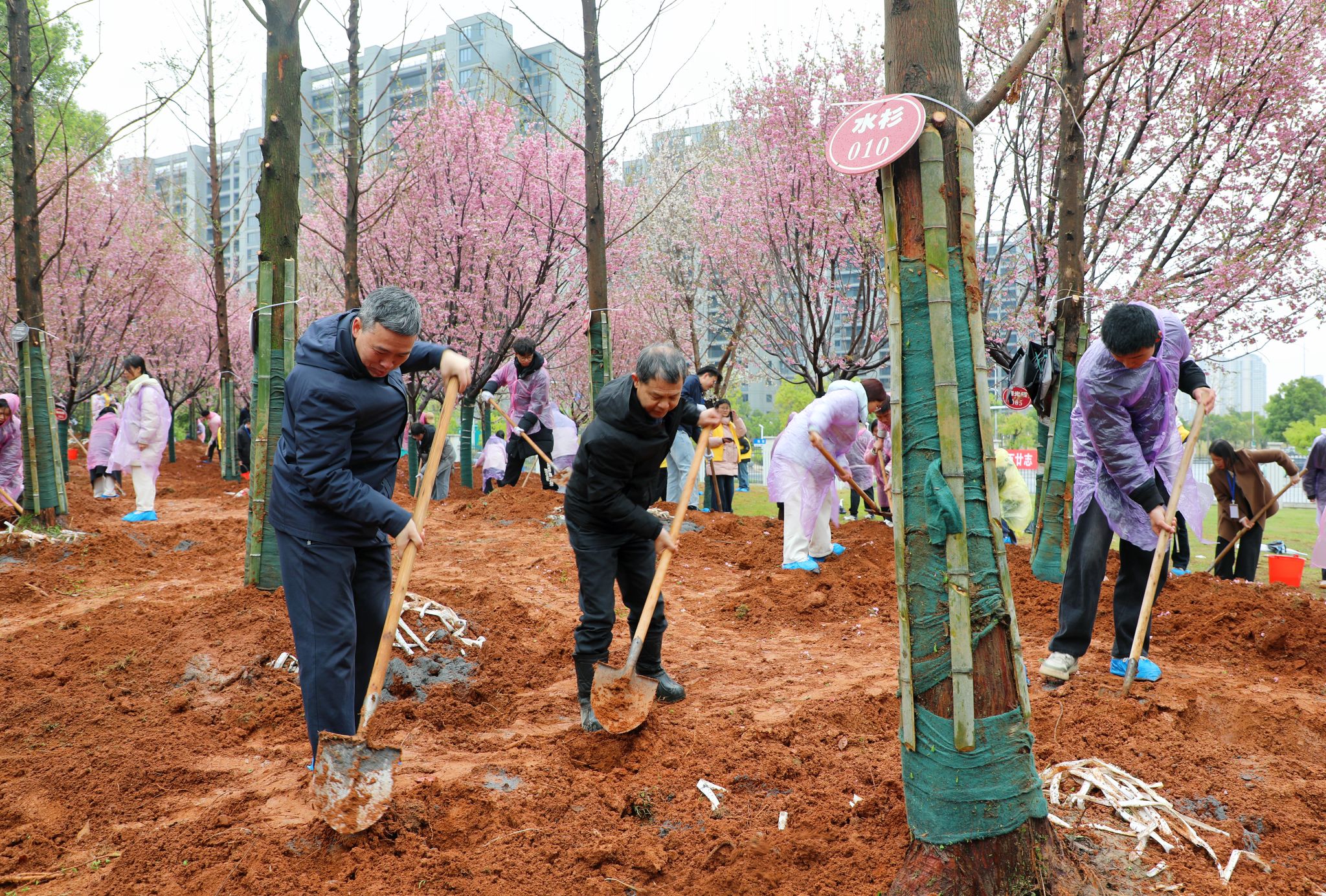 啟動儀式結束后,植樹活動正式開始。大家手持鐵鍬、扶正樹苗、細心培土,共同栽下了水杉、陽光櫻等120株樹苗,為美麗校園再添新綠。紀念林承載著全體校友對母校的深厚情誼,體現了全體師生建設母校的堅定信心,象征著學校蓬勃發展的生機與活力,也寄托著對莘莘學子的殷切期望。這片紀念林扎根學校,將枝繁葉茂、生生不息,見證學校事業蓬勃發展、欣欣向榮。