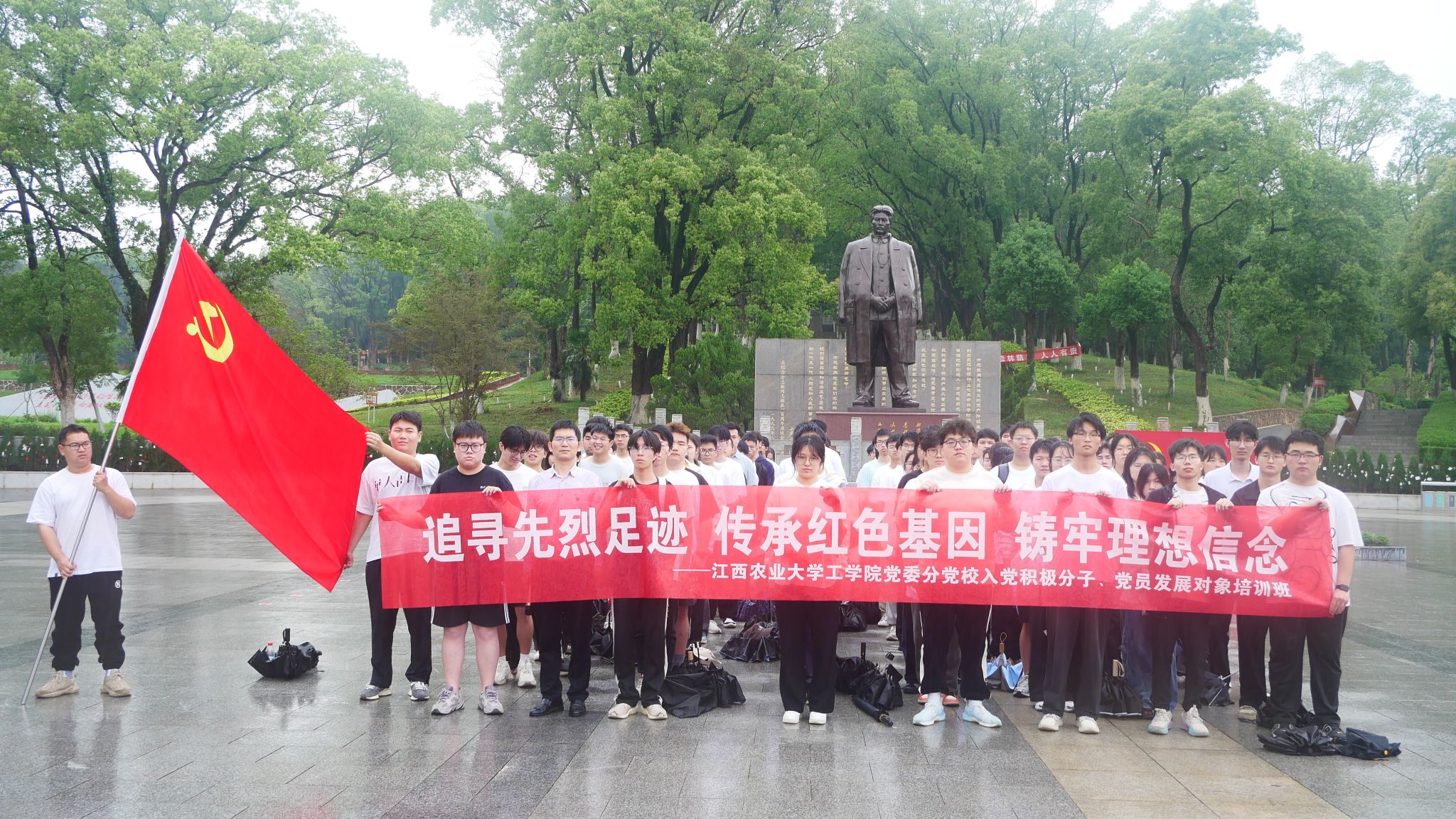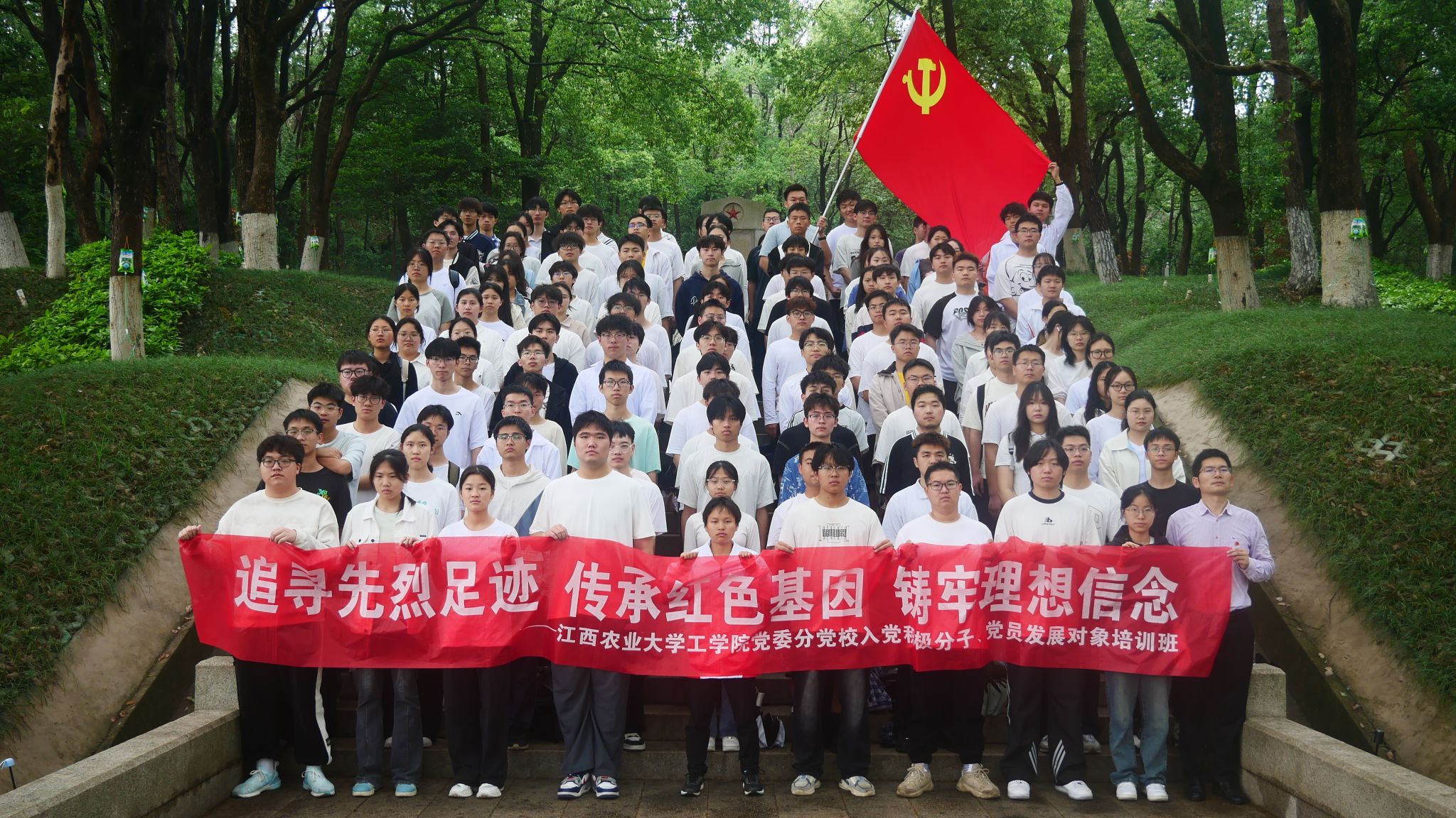 為進一步推動深入貫徹中央八項規定精神學習教育,強化青年學生的理想信念教育,堅定青年學生聽黨話、感黨恩、跟黨走以及愛黨愛國的決心,4月22日下午,工學院黨委組織青年學生前往方志敏烈士陵園,開展“追尋先烈足跡,傳承紅色基因,鑄牢理想信念”主題教育活動,院團委負責人(組織員),部分學生骨干,各學生黨支部黨員發展對象、入黨積極分子等近150人參與。