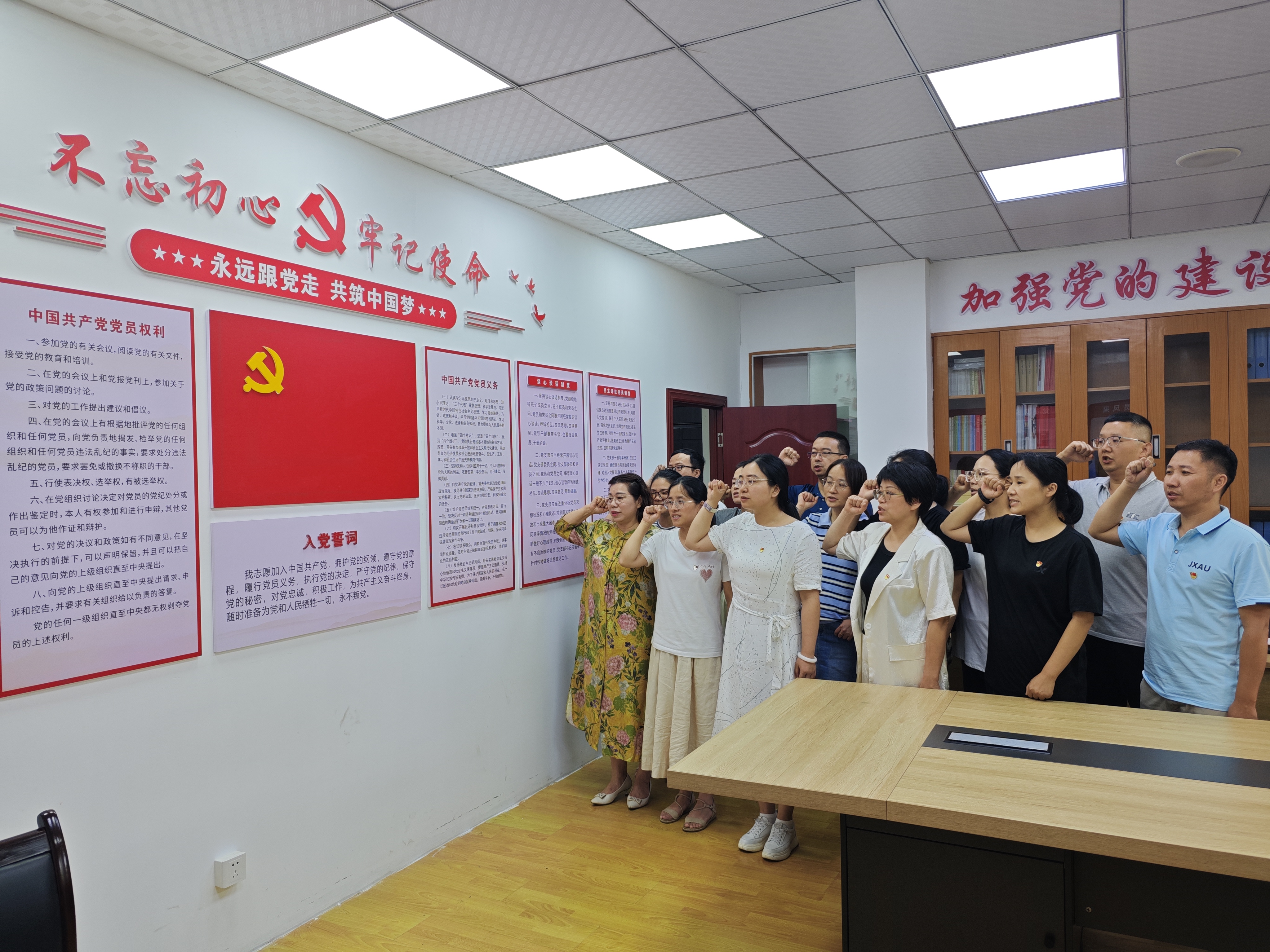 重溫入黨誓詞,砥礪初心使命。在黨的生日這一特殊時刻,黨支部書記劉娜帶領全體黨員面對黨旗,莊嚴重溫入黨誓詞,鏗鏘誓言再次激發了黨員的榮譽感、責任感和使命感。