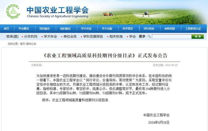 《江西農業大學學報》首次入選農業工程領域高質量科技期刊T2級
