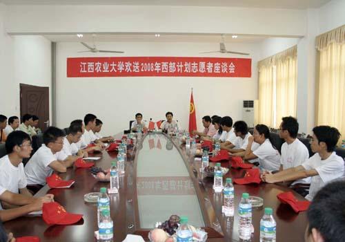 本報訊(肖意風(fēng))7月13日下午,大學(xué)生活動中心三樓會議室激情飛揚(yáng),氣氛熱烈,歡送2008年西部志愿者座談會在此隆重召開。校黨委副書記曹鐘朗,黨委組織部、黨委宣傳部、校團(tuán)委、招生就業(yè)處負(fù)責(zé)同志,各學(xué)院學(xué)生工作、...